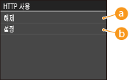 HTTP는 리모트 UI를 통해 기기에 액세스하는 경우 등 네트워크를 통한 통신에 사용됩니다. USB 연결을 사용 중이거나 HTTP를 사용하고 있지 않은 경우 HTTP를 비활성화하여 악의적인 제3자가 사용하지 않는 HTTP 포트를 통해 침입하는 것을 차단할 수 있습니다.