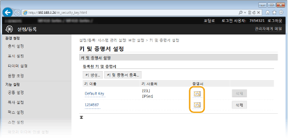 [키 및 증명서 설정] 또는 [CA 증명서 설정]를 클릭합니다.