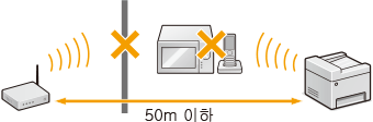 기기와 무선 라우터 사이에 벽과 같은 장애물이 있습니까?