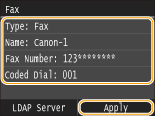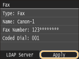 ![]() If the authentication screen appears when you tap <Start Search>, enter the user name of the machine and the password registered in the LDAP server, and tap <Apply>. Registering LDAP Servers