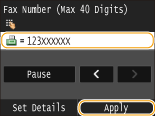 Enter the search target character string using the numeric keys, and tap <Apply>.
