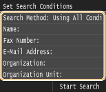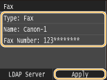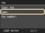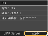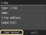 ![]() If the authentication screen appears when you tap <Start Search>, enter the user name of the machine and the password registered in the LDAP server, and tap <Apply>. Registering LDAP Servers