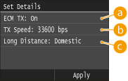 You can also specify <ECM TX> and <TX Speed> from <Menu>