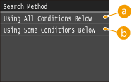 ![]() <Using All Conditions Below>Searches and displays the users that meet all the search criteria specified in steps 3 and 4.