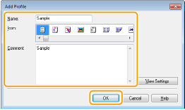Enter a profile name in [Name], select an icon, and then click [OK].