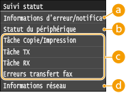 Statut des tâches de copie/d'impression/d'envoi/de réception