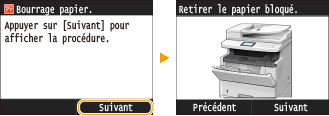 <Réglages papier>Ce bouton permet également de définir le format et le type du papier figurant dans la cassette à papier et le bac multifonctions. Spécification du format et du type de papier