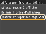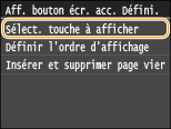 Si l'écran Accueil est plein et si aucun autre paramètre ne peut être enregistré, supprimez des boutons enregistrés et des espaces dans <Réglages écr accueil>.