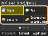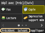 Toucher <Précédent>/<Suivant> de manière prolongée permet de déplacer le bouton en continu.