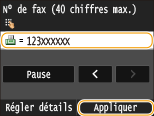 Saisissez la chaîne de caractères au moyen des touches numériques, puis appuyez sur <Appliquer>.