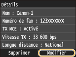 Définition de paramètres détaillés (uniquement s'ils sont enregistrés pour un télécopieur)