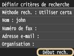 Le nom, les numéros de fax, les adresses e-mail, les noms d'entreprises et les services peuvent servir de critères de recherche de destinataires.