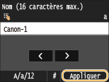 Saisissez la chaîne de caractères au moyen des touches numériques, puis appuyez sur <Appliquer>.