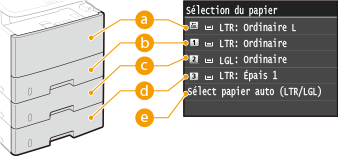 Spécifiez la source de papier qui contient le papier à utiliser pour l'impression des copies.