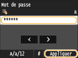 Saisissez le mot de passe au moyen des touches numériques, puis appuyez sur <Appliquer>.