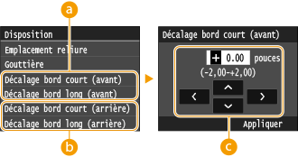 <Décalage bord court (avant)>/<Décalage bord long (avant)>