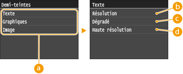 Lorsque vous réglez cette option sur l'un de <Mode 1> sur <Mode 3>, <Mode Impression spéciale A> est automatiquement réglé sur <Désactivé>. Mode Impression spéciale A
