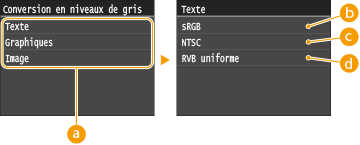 Cette section décrit les paramètres permettant de convertir des données de couleur en données de niveaux de gris.