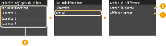 Si les paramètres du pilote d'imprimante ne correspondent pas au format et au type du papier chargé alors que <Activé> est sélectionné, un bourrage papier ou une erreur d'impression peut survenir.