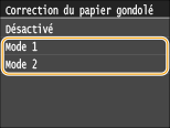 Si le papier imprimé a tendance à s'enrouler, sélectionnez cette option. L'effet de l'amélioration est plus fort avec <Mode 2> qu'avec <Mode 1>.