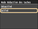 En fonction du type de papier ou des conditions ambiantes, des traînées peuvent apparaître sur les imprimés. Définir cet élément sur <Activé> peut résoudre le problème. De même, définir cet élément sur <Activé> réduit le bruit produit par l'impression.