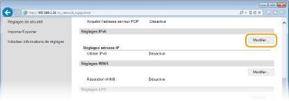Cliquez sur [Modifier] dans [Réglages IPv6].