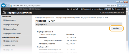 Cliquez sur [Modifier] dans [Réglages IPv4].