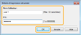 Après avoir envoyé le document sécurisé à l'appareil, imprimez-le dans les 30 minutes. Passé ce délai, le document sécurisé sera effacé de la mémoire de l'appareil et ne pourra plus être imprimé.