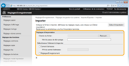 Cochez cette case pour importer les données de paramétrage de l'appareil.