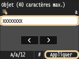 Saisissez l'objet à l'aide des touches numériques et appuyez sur <Appliquer>.