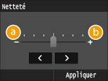 Vous pouvez régler la netteté de l'image. Augmentez la netteté pour améliorer un texte flou ou des lignes floues et diminuez-la pour améliorer l'apparence de photos de magazine.
