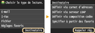 Mettre l'appareil hors tension ou régler <Limiter nouveaux destinataires> sur <Activé> a pour effet d'effacer les destinataires récents et de désactiver cette fonction. Restriction des destinataires disponibles