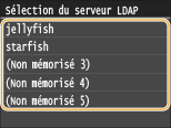 Si vous avez déjà spécifié un destinataire à l'aide des touches numériques, il est possible de choisir neuf autres destinataires à l'aide d'un serveur LDAP.
