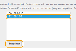 Sélectionnez une adresse IP, puis cliquez sur [Supprimer].