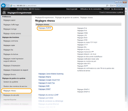 [Réglages TCP/IP].