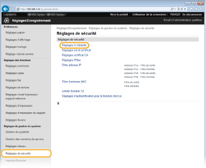 Cliquez sur [Réglages de sécurité]