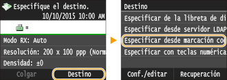 Si desea eliminar destinos de una forma rápida y sencilla sin mostrar una lista de destinosAntes de pulsar <Destino> en el paso 1, puede pulsar