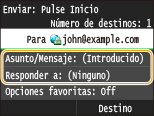 ![]() ![]() La dirección de respuesta que se puede especificar es siempre una de las direcciones de correo electrónico de la Libreta de direcciones.