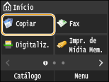 É possível registrar até quatro combinações de configurações de cópia frequentemente usadas. Ao simplesmente selecionar uma combinação de configurações favoritas registrada, quando necessário, você pode eliminar a necessidade de configurar as mesmas configurações sempre que fizer cópias, tal como se você define frequentemente o número de cópias como 5, defina <Apagar Moldura> como <Ativado> e aumente a nitidez ao copiar. Também é possível exibir as configurações como botões de atalho na tela Início.