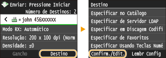 Selecione <Destino>  <Confirm./Edit.>.