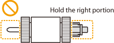 ![]() ![]() Segure a parte certa do eixo do rolo de papel. Não segure na parte esquerda do eixo.