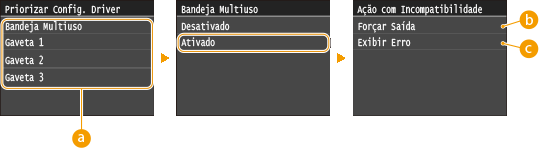 Se as configurações do driver de impressão não correspondem ao tamanho e tipo de papel carregado com <Ativado> selecionado, uma obstrução de papel ou erro de impressão podem ocorrer.
