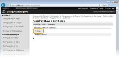 Clique em [Configurações de Chave e Certificado] para instalar um par de chaves ou em [Configurações de Certificado CA] para instalar um certificado de CA.
