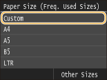 If the screen shown above is not displayed when paper is loadedIf you always load the same paper in the multi-purpose tray, you can skip the paper setting operations by registering the paper size and type as the default setting. When the default setting is registered, however, the screen shown above is not displayed. To display the screen, select <Specify When Loading Paper> (Registering Default Paper Settings for the Multi-Purpose Tray).