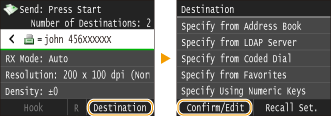 / to toggle the destinations you specified. Display a destination you want to delete, and press . |