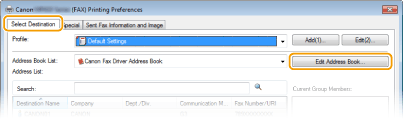 Once you register frequently used destinations for PC faxes in the Address Book, you can easily specify destinations whenever you send PC faxes. Also, Address Book data in CSV format created on applications such as Microsoft Excel can be imported into the machine, or the Address Book data can be exported to a file for use on other fax machines or applications.