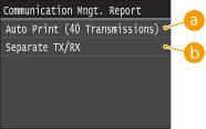 <Menu> <Output Report> <Report Settings>  <Communication Management Report>  Select the print setting