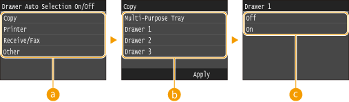 ). Automatic drawer selection is always enabled for printing on paper fed from the multi-purpose tray.