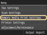 All the settings are about the memory media print listed with short descriptions. Default settings are marked with a dagger (