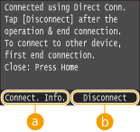 In the Home screen, tap <Direct Connection>. The machine enters the state in which you can connect your mobile device to the machine.